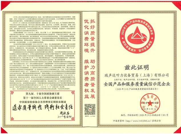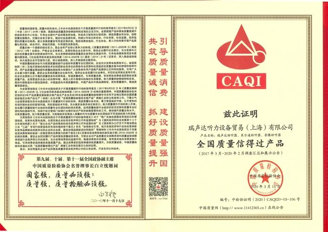 作为对贝尔通产品质量和服务的肯定,2020年中国质量检验协会再次向贝尔通助听器颁发了三项荣誉证书,以期能引导用户选择高标准高质量的产品,传递质量信任,优化消费环境。